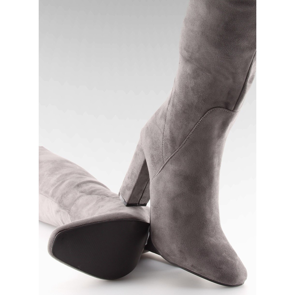 Discover elegance and comfort with the C76P Grey heeled musketeer boots in a shade of grey. These beautiful women's boots, reaching below the knee, combine a classic design with a modern style, making them an ideal choice for everyday wear.