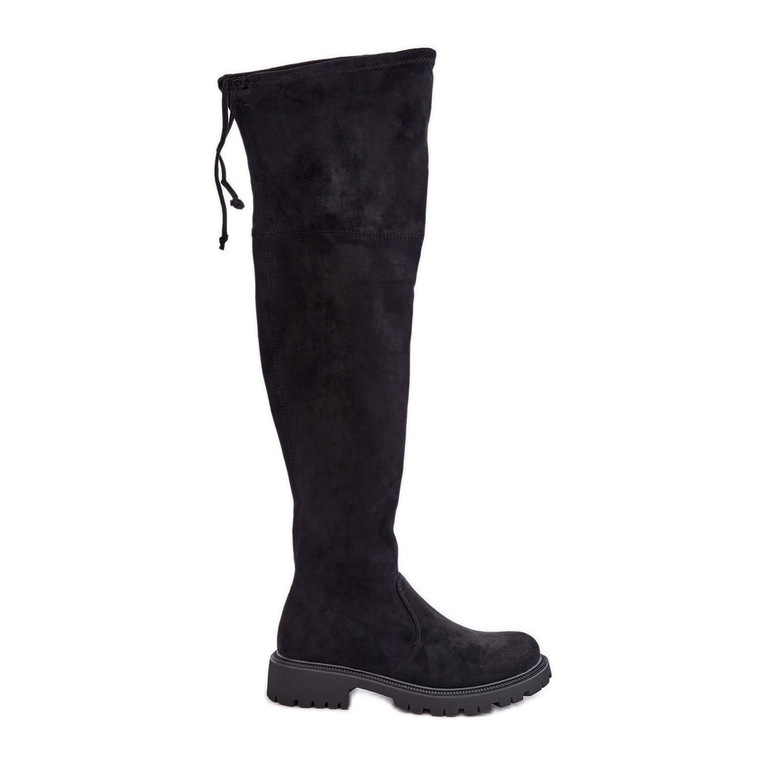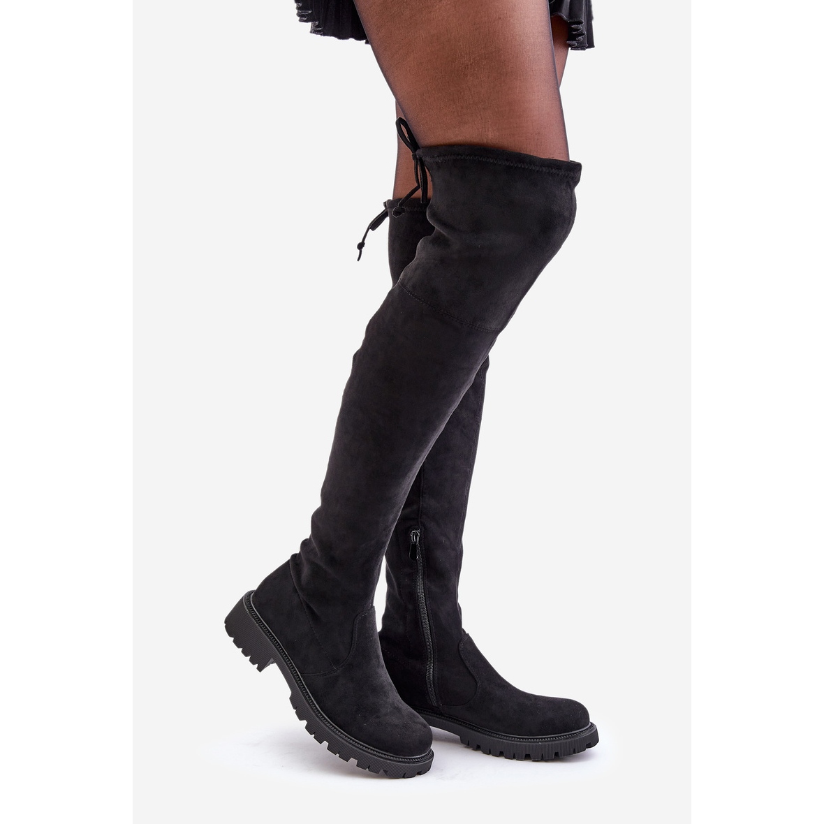 Inna marka Over-the-knee boots with a flat heel made of eco-suede, Black Arkelia