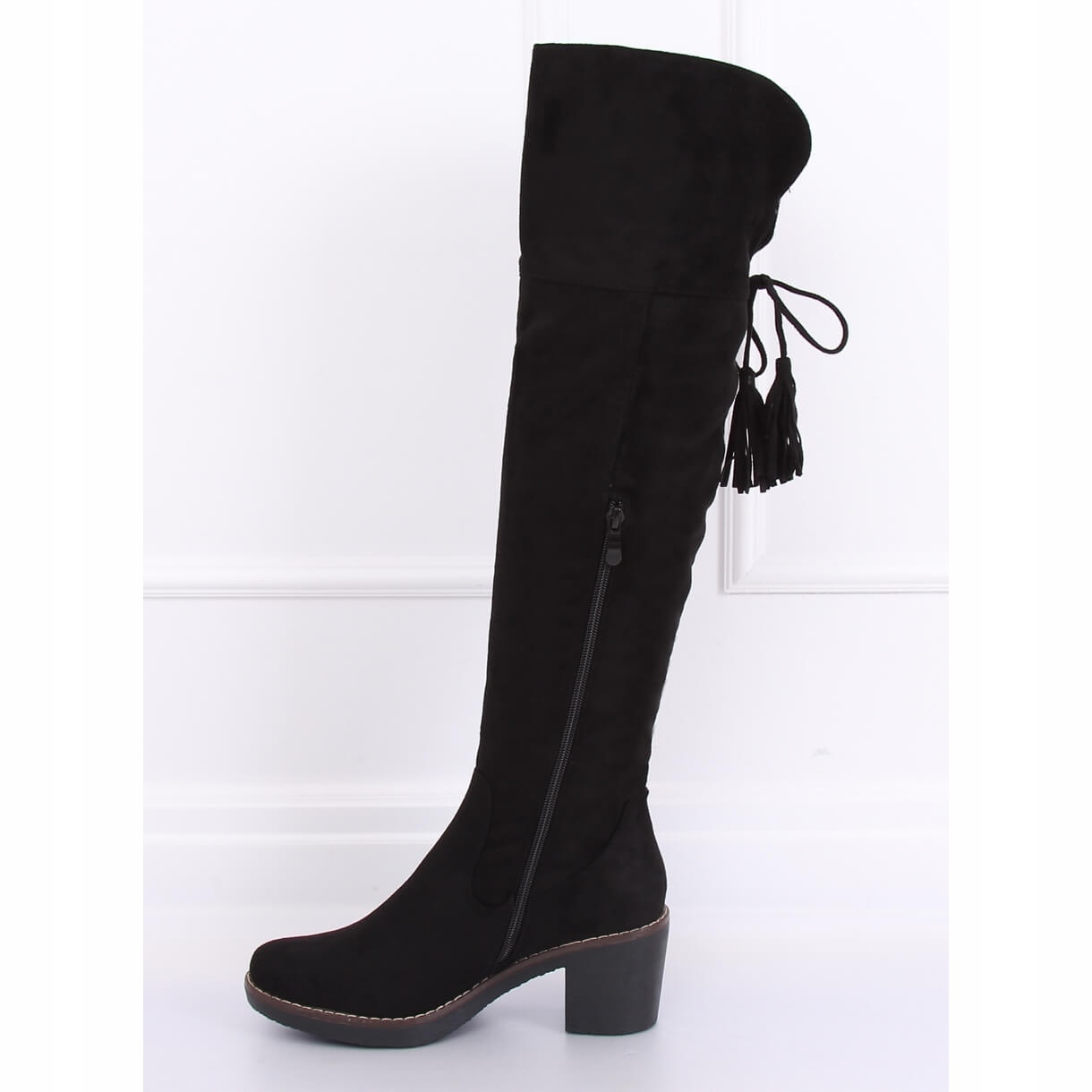 Discover elegance and comfort in our black 8B938 Black rubber-soled over-the-knee boots. These suede over-the-knee boots are an absolute must-have in every woman's wardrobe, combining fashionable design with functionality.