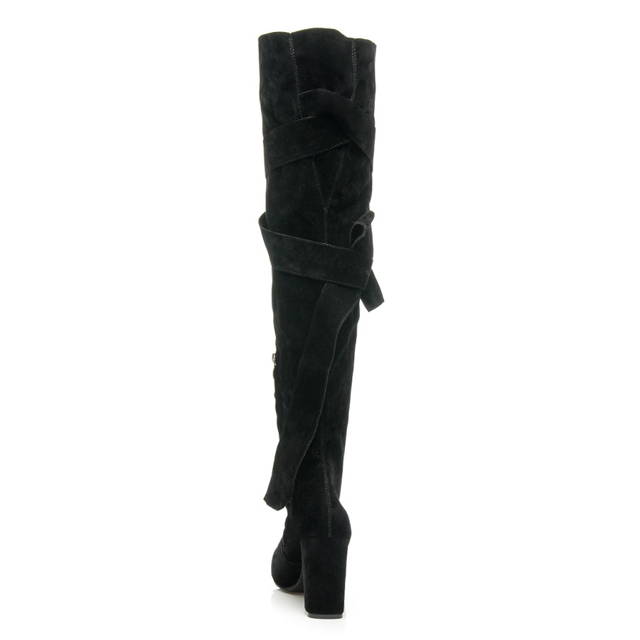 Discover the unparalleled combination of elegance and comfort with Vices musketeer boots, which will perfectly complement your wardrobe. These sexy black riding boots, made of high-quality ecological suede leather, adapt to the leg, emphasizing its beauty and slimness. Stylish lacing adds character, making every styling extremely sophisticated.