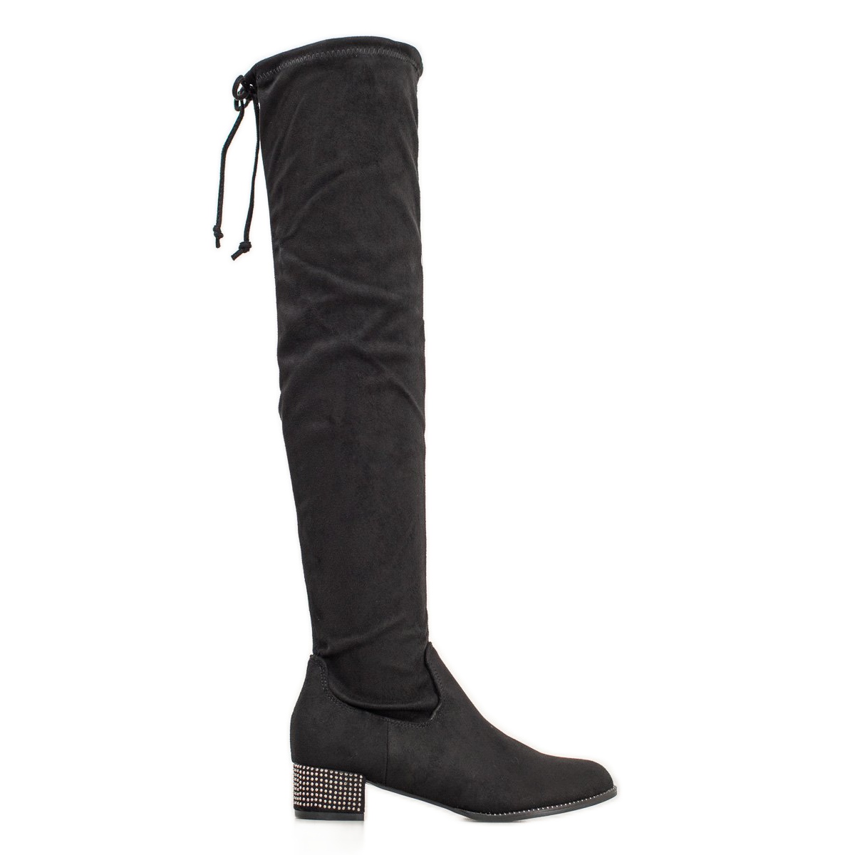 The unique design of the over the knee boots is enriched with a subtle lacing at the top, which not only ensures a better fit of the uppers, but also adds a unique character to them. The decorative 4 cm high block heel, decorated with small shiny crystals, attracts attention and emphasizes the elegance of every outfit.