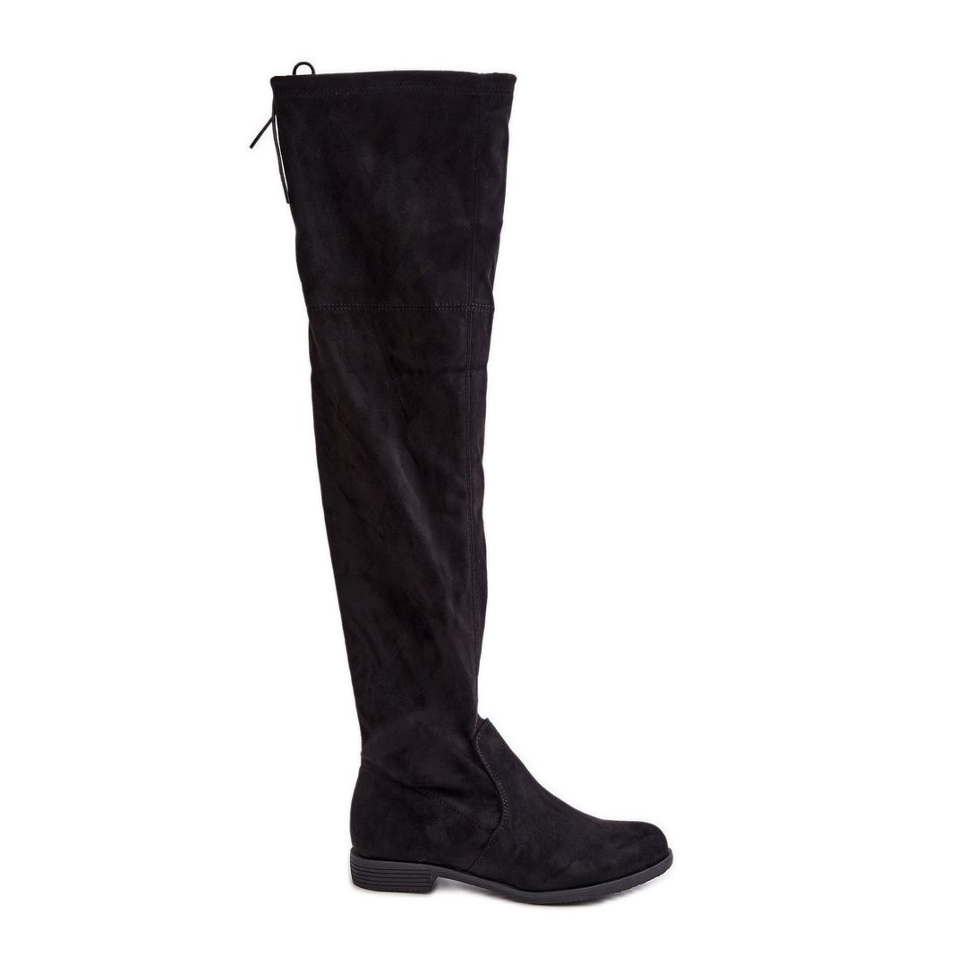 Details: Over-the-knee flat-heeled boots made of eco-suede, Black Linnithia