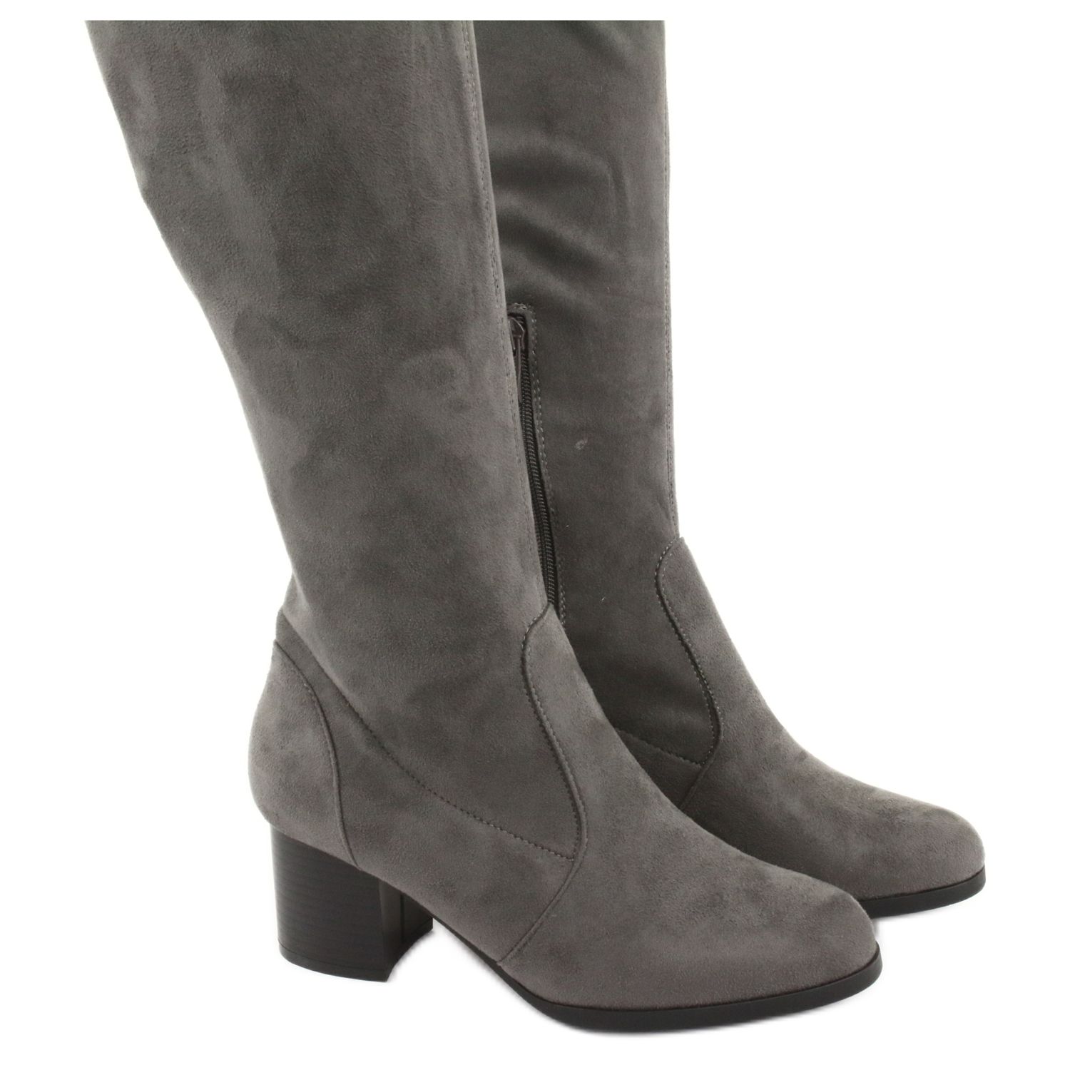 Discover elegance and comfort in gray over-the-knee boots from M.Daszyński. These long, women's boots are made of elastic textile material - stretch in a suede style, which makes them perfectly fit the legs, emphasizing their silhouette. Insulation with soft shoe fur in the insole and lower part of the upper provides not only pleasant warmth, but also excellent breathability.