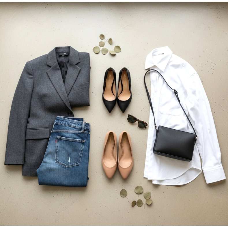 Surprisingly, high heels go perfectly with oversized clothing - but only in certain combinations. An oversized boyfriend jacket with straight jeans and high heels is an icon of a Parisian woman - the contrast between the loose, masculine form of the jacket and feminine high heels creates a fascinating stylistic tension.