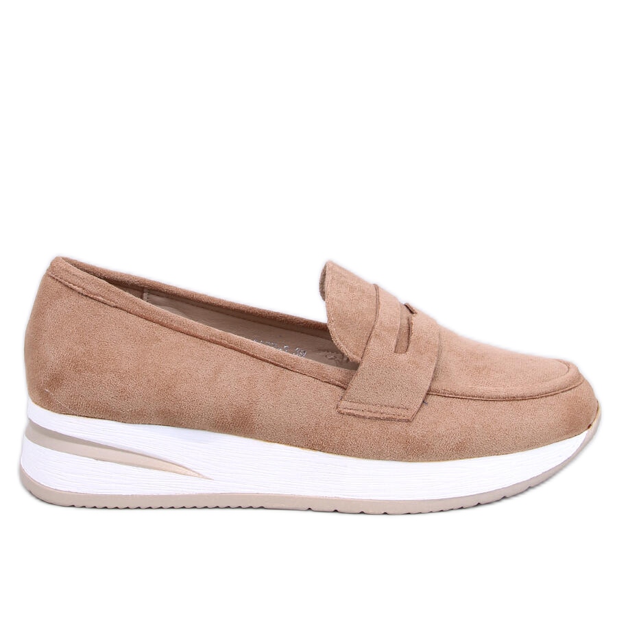 Discover elegance and comfort with brown moccasins on the Pacifs Camel wedge! These suede women's shoes are an ideal combination of classics and sports style, thanks to which they will work in everyday stylizations. The height of the 4.5 cm wedge provides excellent convenience, which makes them the perfect choice for lovers of comfortable footwear.