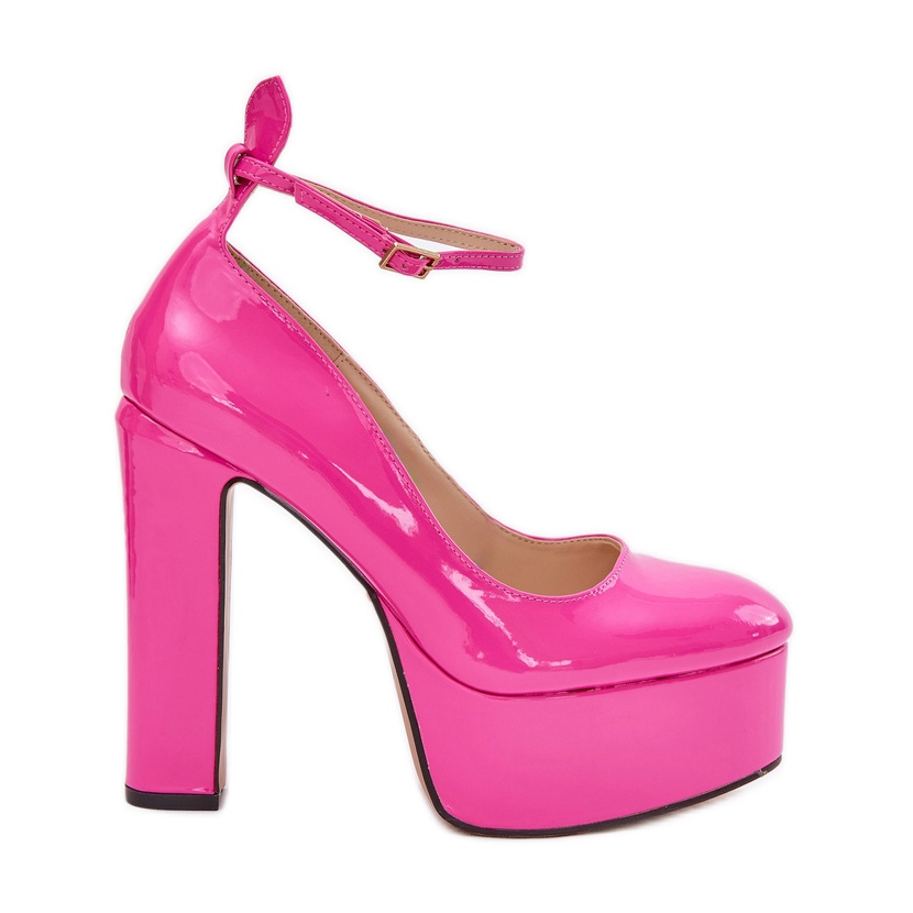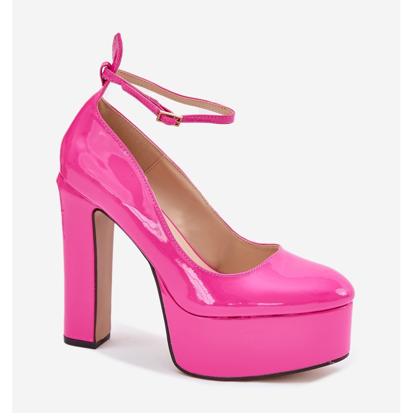 Discover elegance and convenience with varnished pumps on a high pillar and platform in a fashionable pink color. These stylish shoes, made of high quality eco leather, are the perfect choice for special occasions, adding a unique charm to each stylization.