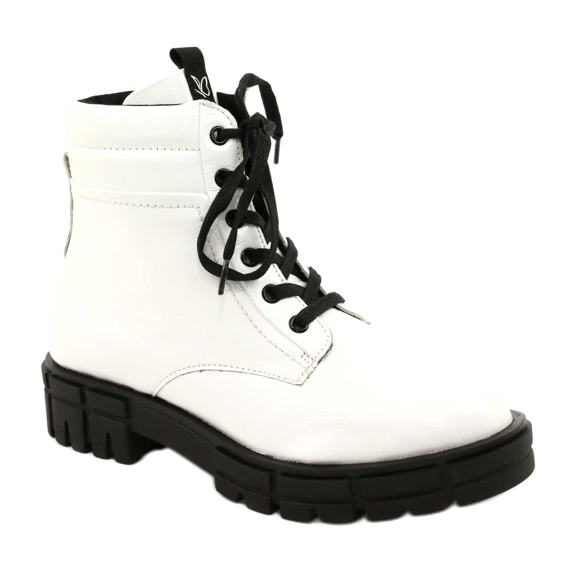 Stylish, varnished women's Caprice boots in White Nadlak combine a fashionable, shiny look with practical solutions, which you will appreciate especially on cooler days. The model is made entirely of natural leather, insulated with soft fur - the perfect choice for urban stylizations when you need warmth and comfort without giving up elegance.