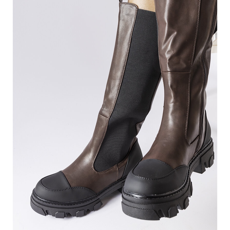 Brown high pasquale boots are a classic and modern model created for the winter wardrobe. Made of ecological leather, insulated and finished with a black rubber sole, ensure heat and stability even on slippery surfaces. The JH20-266 model combines a simple form with practical solutions-the lock makes it easier to put on, the rounded nose adds elegance, and the 5 cm high platform subtly extends the figure.