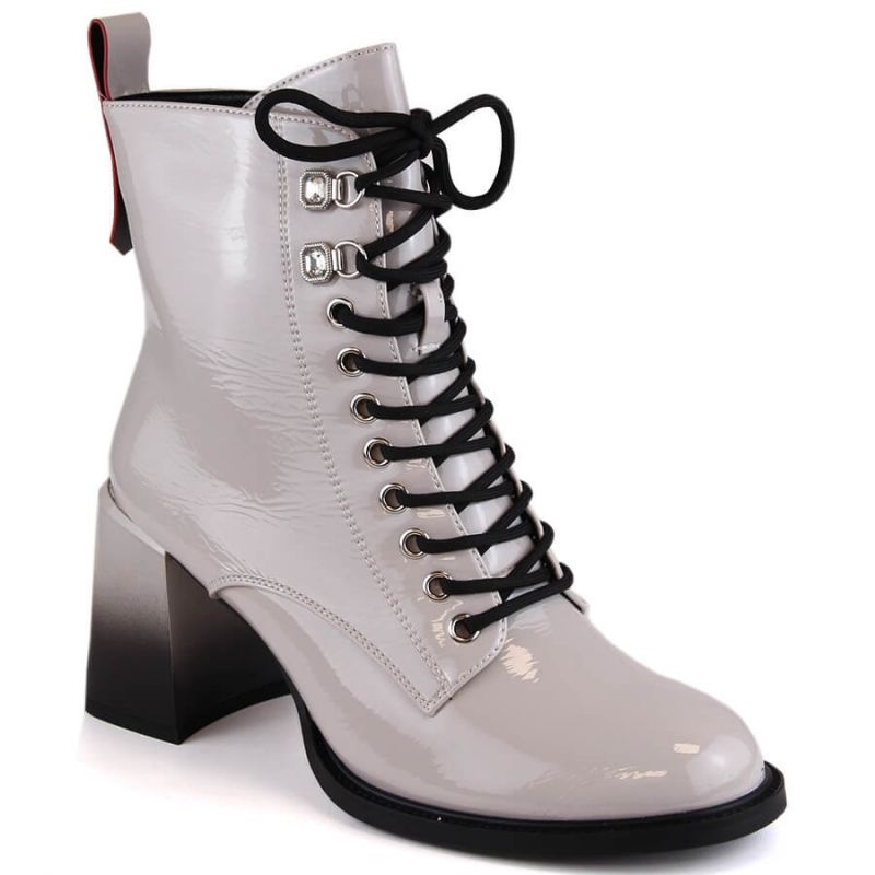 Elegant and practical boots that combine women's elegance with comfort every day. The varnished ecological leather upper gives them a stylish character, and the insulated lining "blanket" provides comfort on cooler days. A stable 8 cm heel emphasizes the figure, and fastening on a zipper and laces allows a perfect fit.