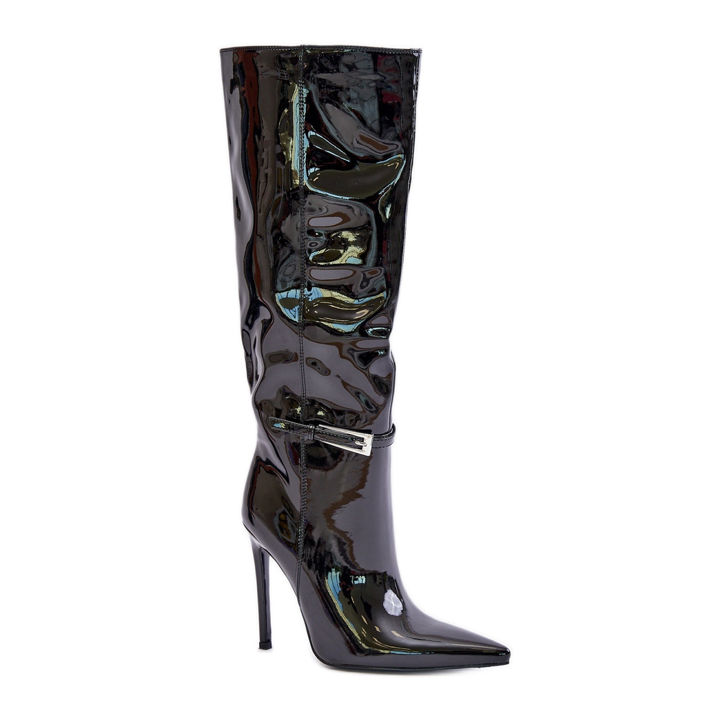 Inna marka Patent Insulated Boots On A High Heel With A Buckle, Black Tameliae