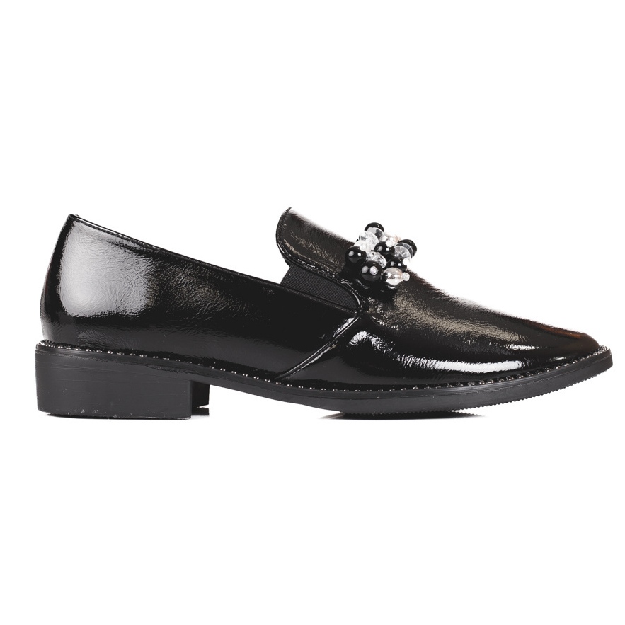 Inna marka Patent leather ladies loafers with decoration, black