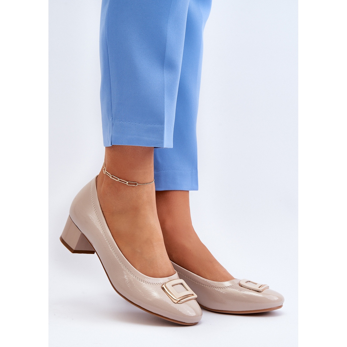 Vinceza Vinceza Patent leather pumps on a block with a decoration, Beige Enollia