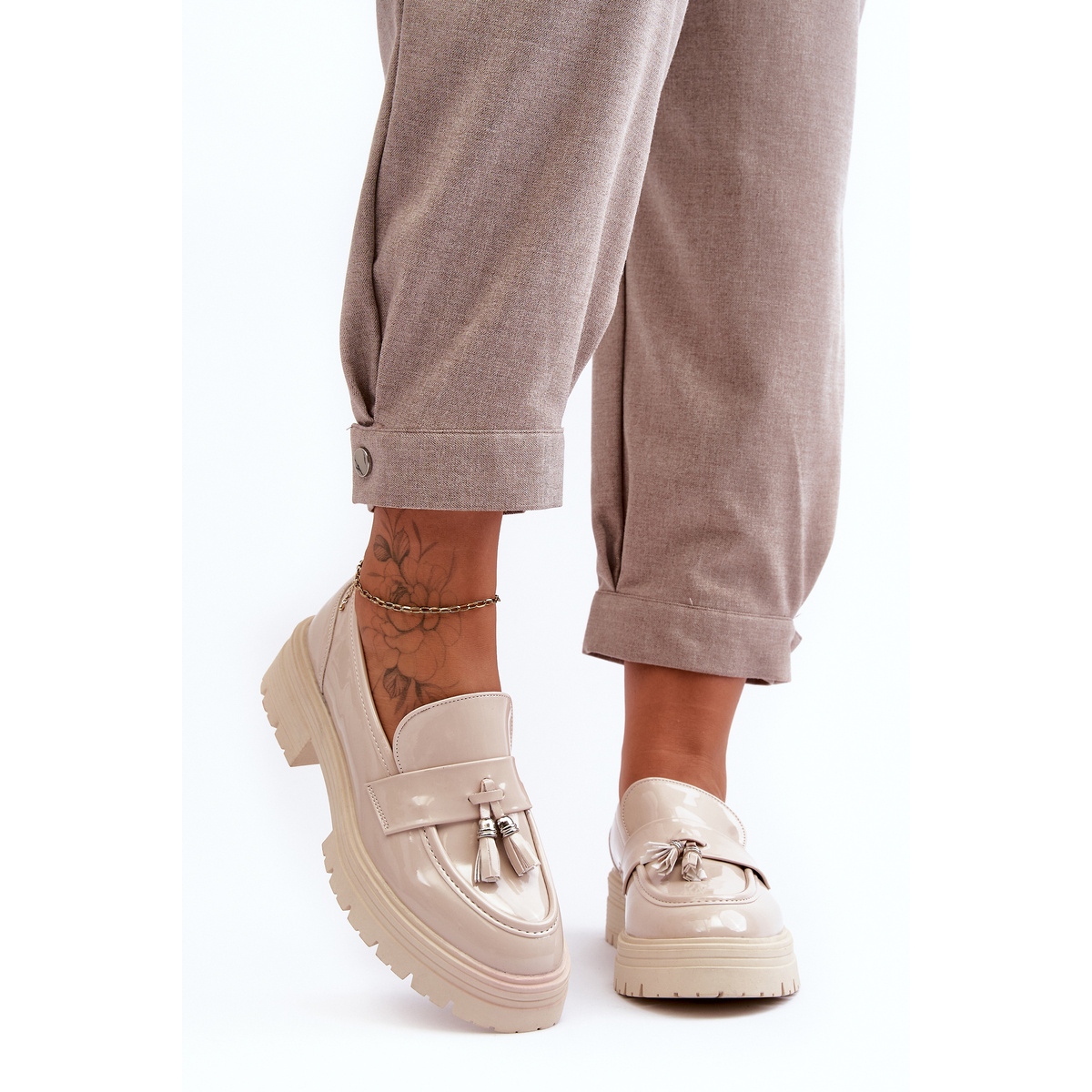 Lacked LoAfets shoes with Velenase fringes - light beige