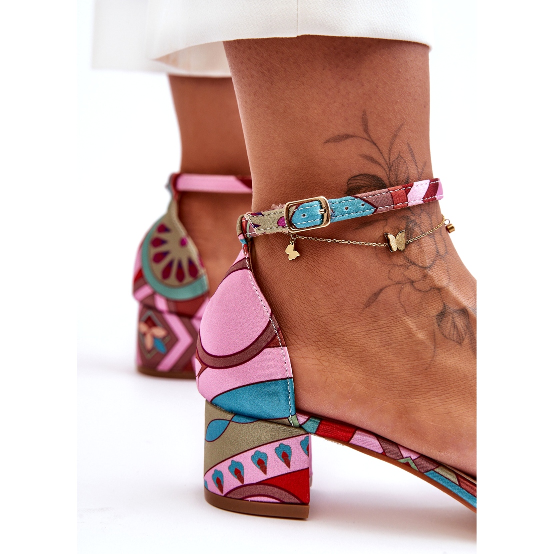 Details: STEPHAN Patterned Satin High Heels Sandals Pink Mix Inspire Me! multicolored