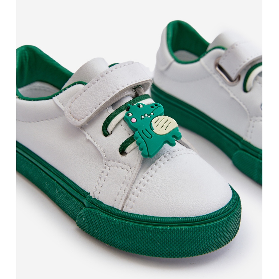 Details: Pennyn Green and White Kids Sneakers With Pin