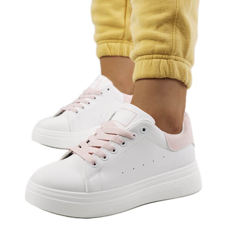 Details: Pink and white sneakers on the Justar platform
