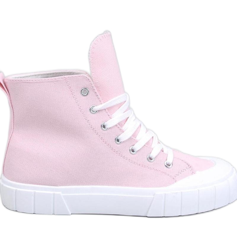 Discover the latest hit of this season - canvas women's ankle sneakers in a charming pink color. These fashionable shoes combine a classic cut with modern accents, which makes them the perfect choice for every style lover. Their thick, white sole not only adds character, but also provides comfort and stability on every surface.