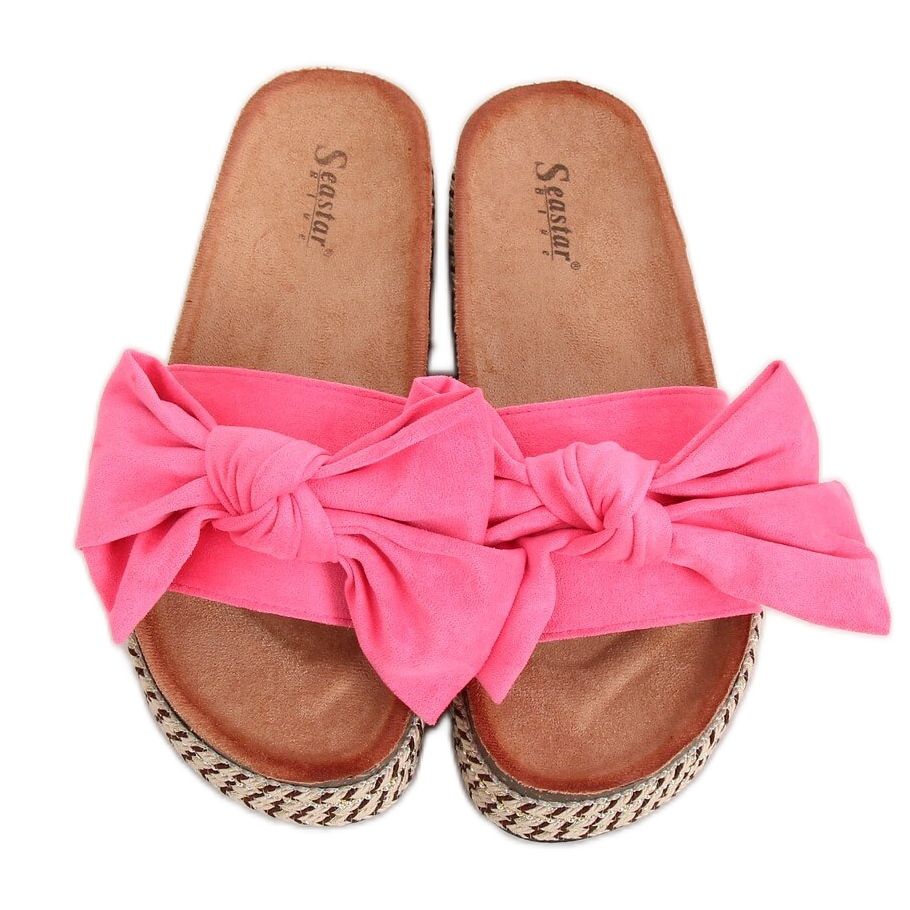 Discover the charm of pink flip-flops with a high sole CK137P Fushie - perfect for summer days! These unique women's flip-flops stand out not only with their beautiful, pink color, but also with an elegant bow, which adds extraordinary charm. The decorated high sole provides not only a stylish look, but also comfort when worn.