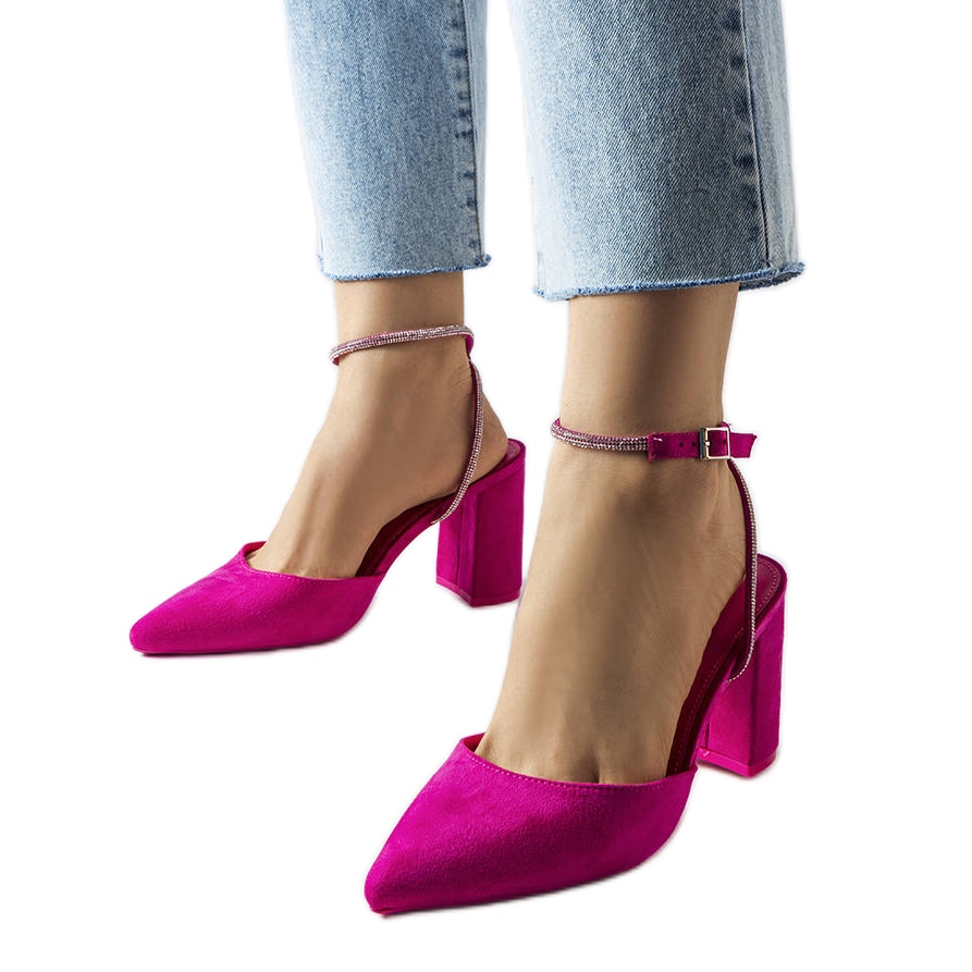 Stella's elegant pumps are a proposal for ladies who want to emphasize their stylization with color and classic cut. The intense Fuxia color in combination with suede ecological leather gives shoes a expressive, summer character, and subtle rhinestones give them shine in evening stylizations.