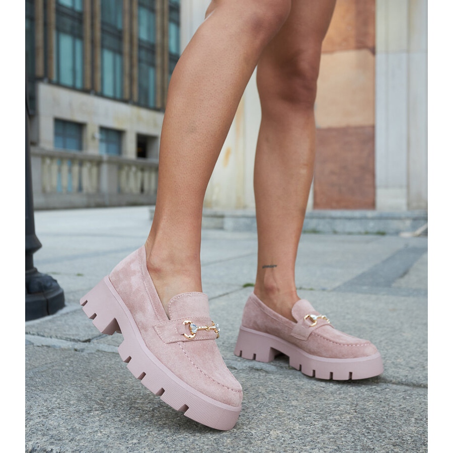 Inna marka Pink moccasins with a buckle and rhinestones by Gaiola