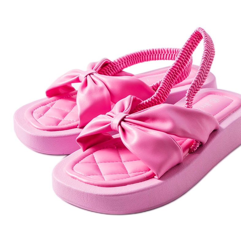 Delicate, feminine Sandals Montagn in an intense shade of Pink - perfect in spring and summer. The classic cut on a low platform (3 cm) provides comfort and a subtle raising of the figure, and the decorative bow adds a romantic character.