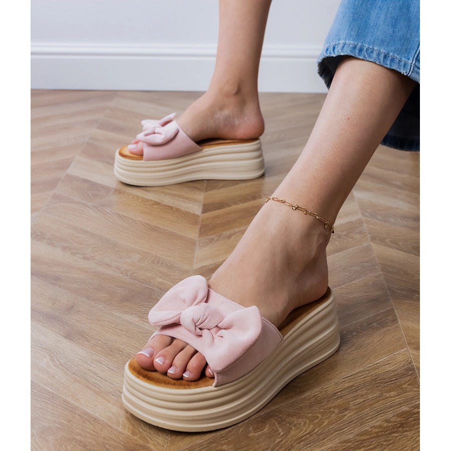 Don't wait any longer! Enrich your collection with pink flip -flops on the platform with a bow today and enjoy the style every day!