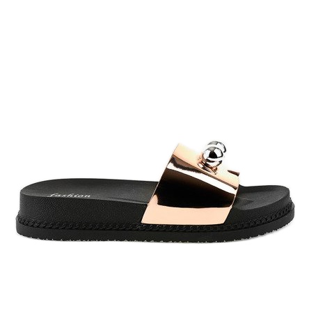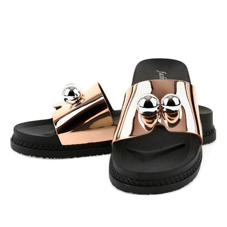 Pink ball slides 1819 are the perfect choice for women who want to combine comfort with a fashionable look. These charming wedge slides stand out not only with their unique rose gold color, but also with elegant details, such as unusual balls, which add elegance and originality. Thanks to the combination of pink and black, they look extremely stylish, which makes them fit perfectly into current trends.