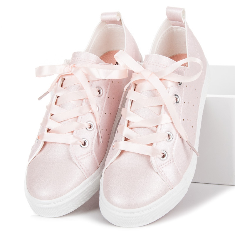 Details: Kylie Pink Sneakers Tied With A Ribbon