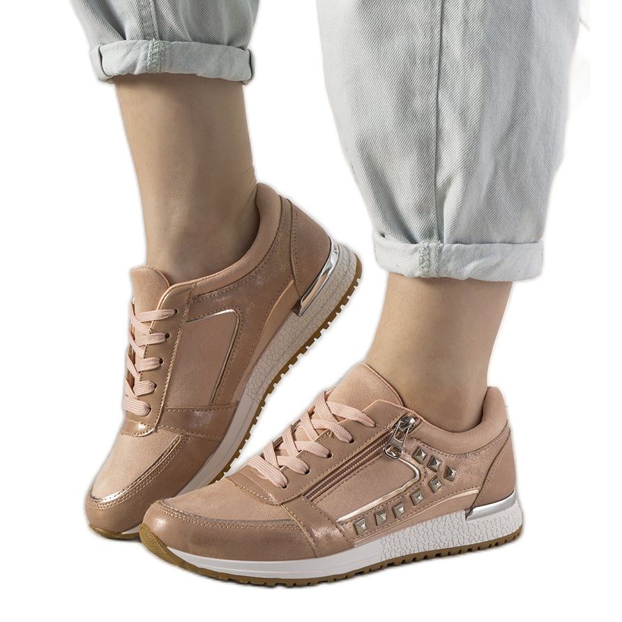 Daphne pink sports sneakers decorated with studs are the perfect choice for modern, active women who want to combine comfort with fashionable style. These sneakers are distinguished by their neutral color, which will work perfectly in many casual styles, adding them originality.