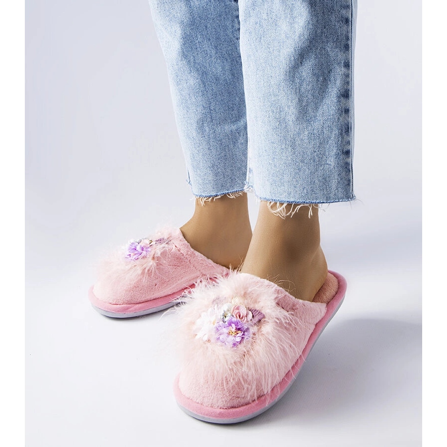 Inna marka Pink warm slippers with Moly flowers