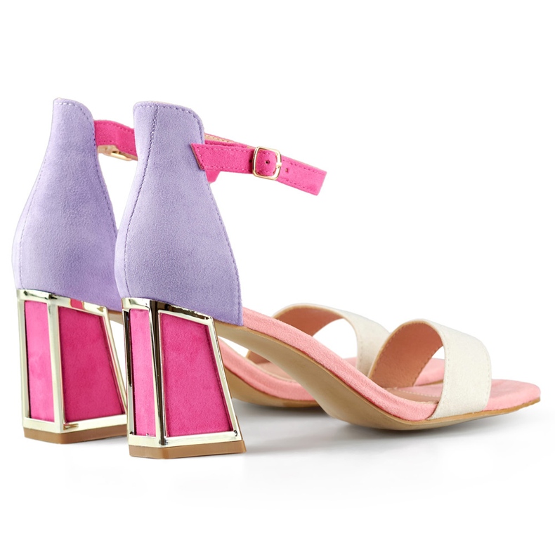 Inna marka Pink women's high-heeled sandals with ankle fastening