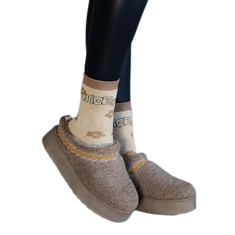 Discover snow boots on a platform with a low upper and a greene -embroidered pattern in beige color - perfect footwear for winter days that combine style, comfort and functionality. Thanks to the round toe and low upper, these flip flops are extremely practical, and the inserted cut ensures ease of putting on and removing.