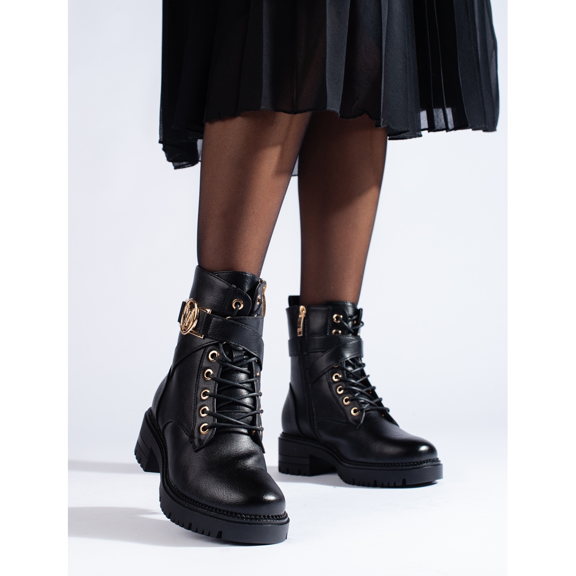 We present the W. Potocki women's workers - the perfect choice for the autumn/winter season. These unique ankle boots are made of high-quality ecological leather, which makes them not only stylish but also environmentally friendly. Their classic black color perfectly matches a variety of styles, both casual and rock.