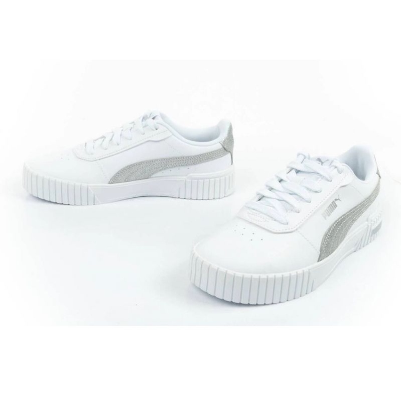Puma Carina 2.0 shoes in white with additional silver accents are a classic that goes perfectly with any sports styling. A round nose and a laced clasp make you adapt them to your foot in a maximum of comfort.