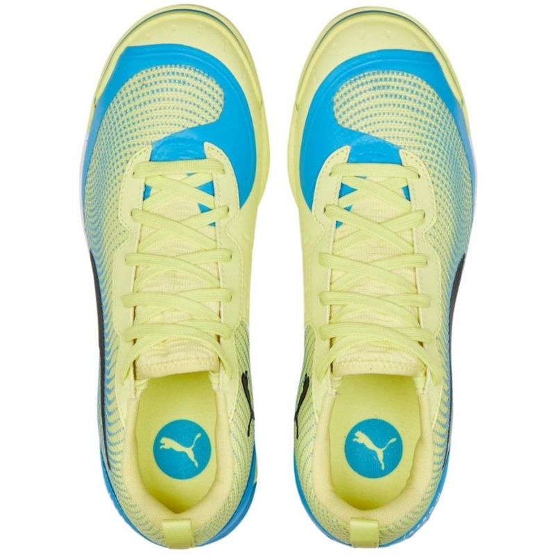 Puma Ibero III IT 106891 01 football shoes - blue halls with green accents. Model from the premiere Festest Pack collection, designed as a comfortable introduction to the football era of speed - the perfect choice for training and recreational indoor matches.