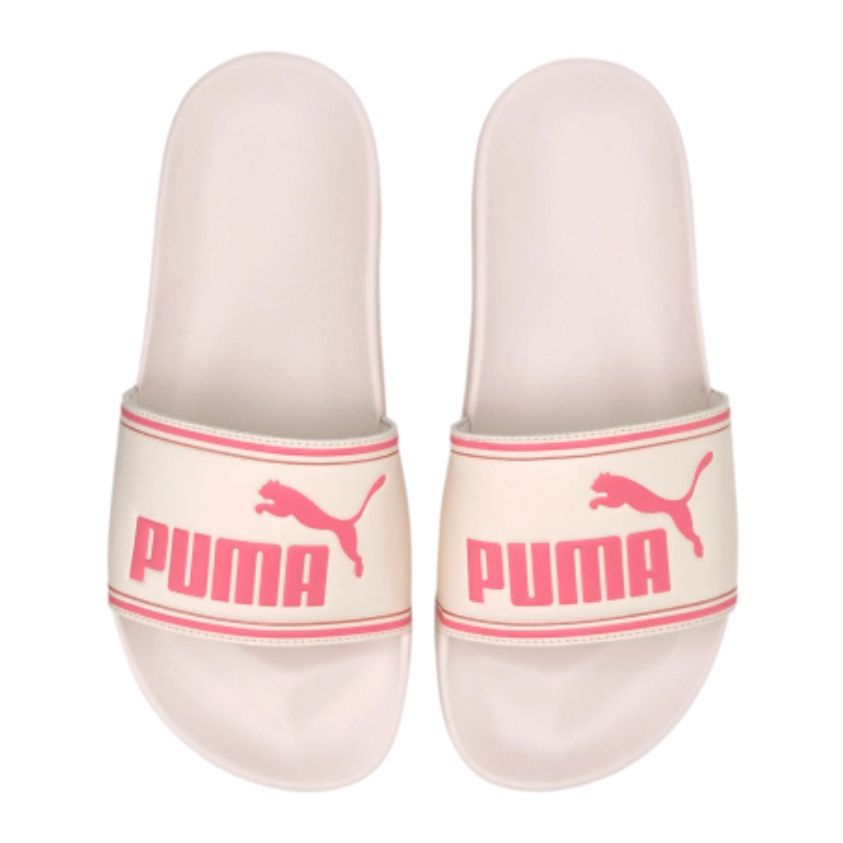 Women's slippers Puma Leadcat FTR - model 372276 04 - are comfortable, versatile summer shoes and more. A pink, wide strap with a soft lining stabilizes the foot and provides comfort during a long wearing, and the profiled insert and a lightweight EVA foam sole absorb each step and improve adhesion to the ground. A simple, leap -nose cut and a small platform (about 2 cm) make the flaps work well on the beach, by the pool, while walking around the city or at home.