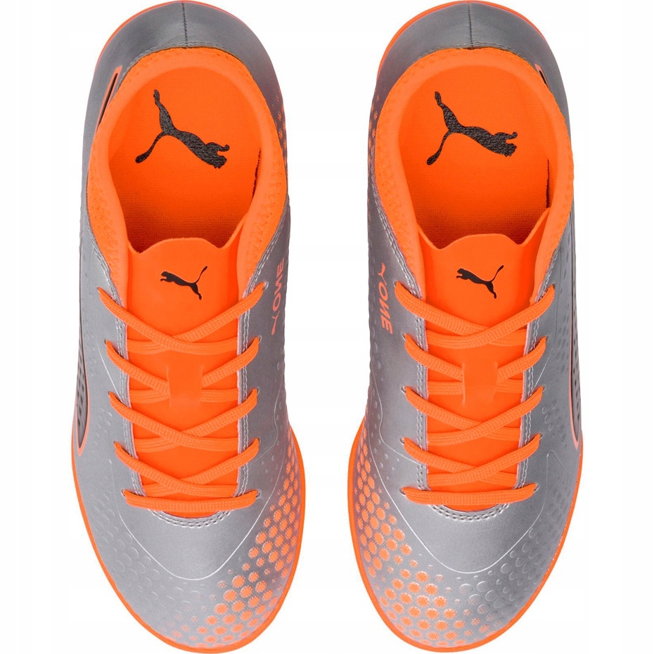 Details: Puma One 4 Syn It Junior soccer shoes gray-orange 104783 01 multicolored silver