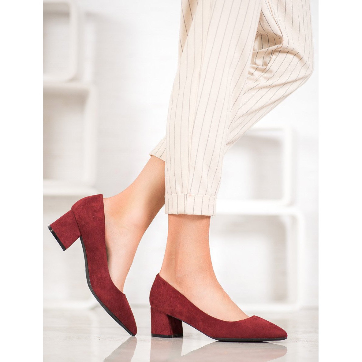 Discover elegance and comfort with the pumps on the block heel from Fama in an intense red color. These classic women's shoes are made of high-quality ecological suede, which makes them not only soft and pleasant to wear, but also durable.