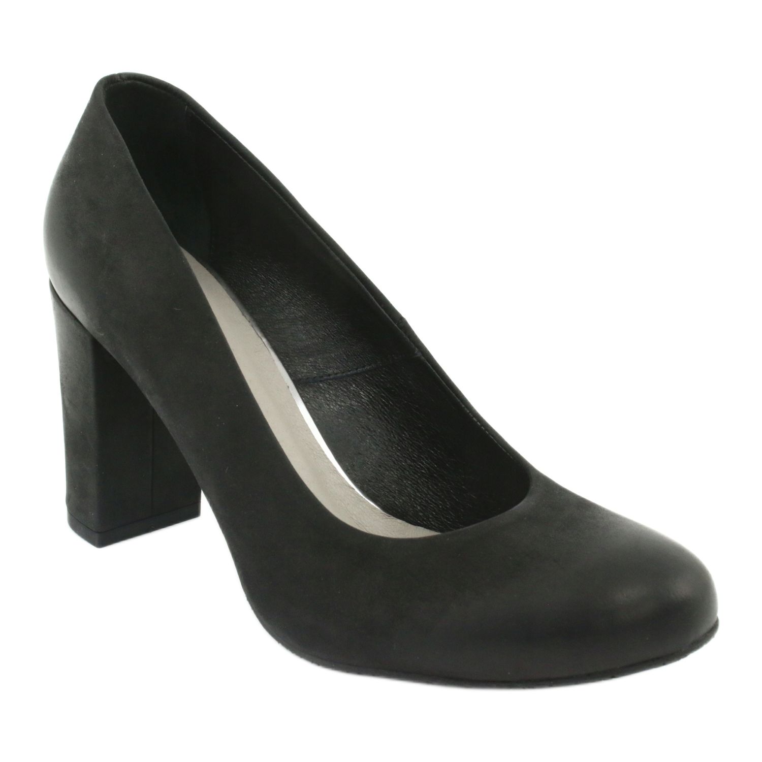 Made entirely of natural leather, the pumps guarantee not only an aesthetic appearance, but also durability and comfort of use. Their interior is lined with very soft inserts, which makes them extremely comfortable, even during long-term wear. The classic design with a round toe and a 8 cm high column-shaped heel makes them look great on every foot.