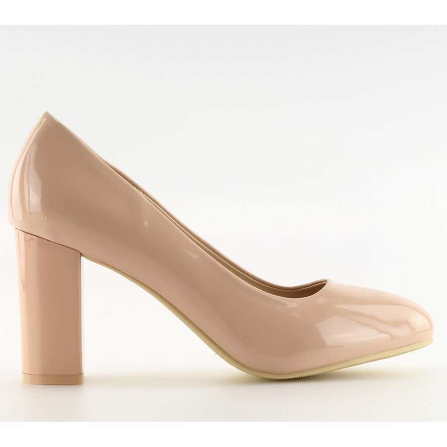 B-59 Beige wide-heeled pumps - beige, patent, elegant and comfortable.