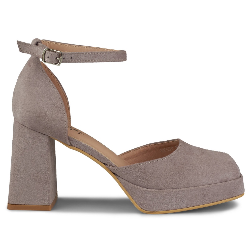 Details: Pumps on a wide heel fastened at the ankle grey