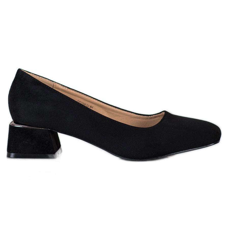 Filippo pumps with a wide heel are a great choice for every modern woman who appreciates the combination of elegance and comfort. These stylish shoes made of black ecological suede leather are perfect for everyday wear as well as for various events. Their classic and elegant design makes them a great match for various styles.