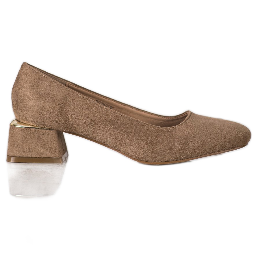Stylish brown pumps with a wide heel from Filippo are the perfect choice for every woman who values elegance and comfort. These women's shoes are perfect for both everyday wear and special occasions. Made of ecological suede leather, they are characterized by a smooth surface and rounded toes, which gives them a classic, yet modern look.