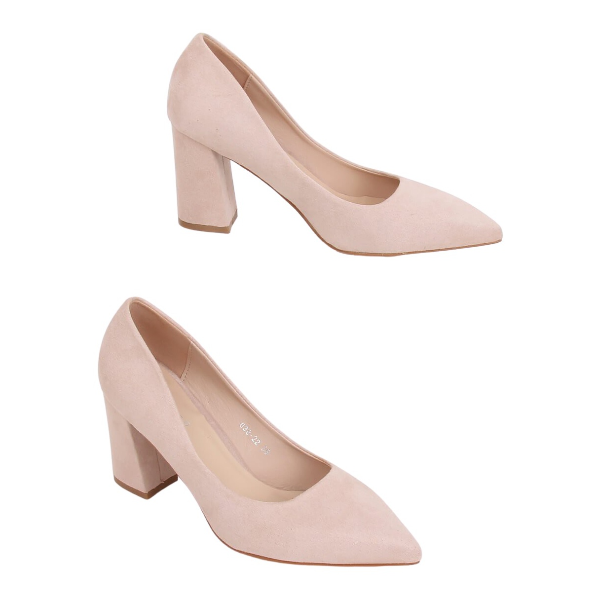The pumps have a different, slip-on fastening, which makes them a practical solution for everyday wear. They can be successfully worn both to work and to meetings with friends. Regardless of the occasion, these beige pumps with a block heel will add class and elegance to any styling.