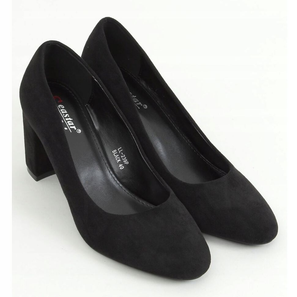 Round toe pumps black LL-239P Black are a proposal that will delight every lover of elegant style. These women's shoes on a 7 cm high block heel combine classic design with a modern approach to comfort. The graceful, rounded toes make the pumps look extremely feminine and stylish, perfectly matching everyday and elegant stylings.