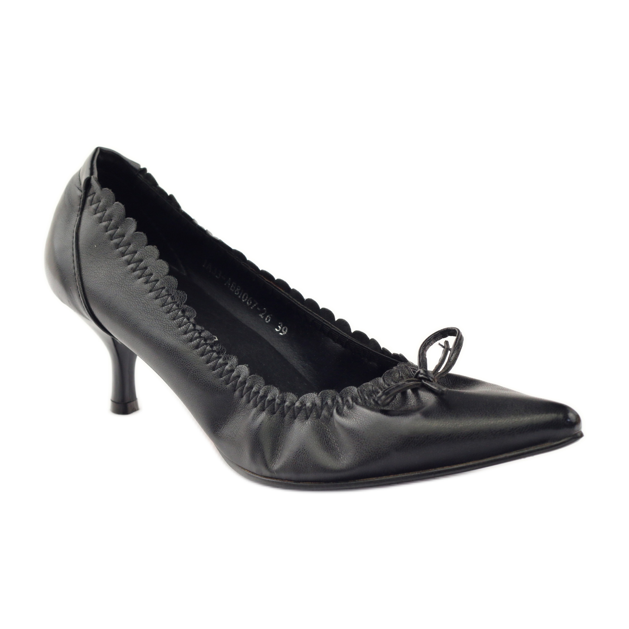 The 81067 model has a pointed toe, which additionally lengthens the legs and adds elegance. The shoes are available in classic black, which perfectly matches various styles, especially those in muted colors. The sole made of plastic provides good grip, and the slide-in fastening makes it easy to put on.