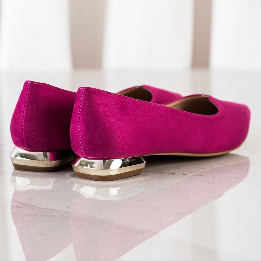 These are elegant women's pumps by Filippo, which will certainly attract attention with their unique style and comfort. Made of pink material imitating suede leather, these shoes perfectly fit into the latest trends. Their strongly rounded toes and decorative cutout give them a subtle and elegant character.