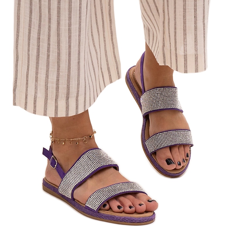 Violet sandals decorated with Carvalia zircons are the perfect choice for women who want to combine elegance with everyday comfort. This flat -heeled model is perfect for summer days, both for social gatherings and lazy moments spent on the beach. Thanks to the innovative design and exceptional details, such as rhinestones, these sandals add the character to every summer stylization.