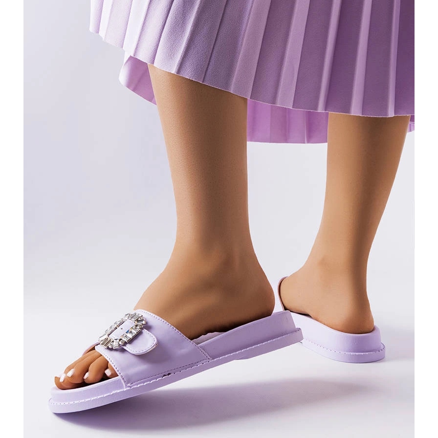 Stylish flip flops on the platform, which will add character and splendor to summer stylizations. The upper made of resistant rubber material, decorated with an elegant buckle with zircons - a subtle accent that catches the eye. The high, 3 cm rubber sole provides comfort during everyday wearing and slightly lifts the figure, maintaining the comfort of walks.