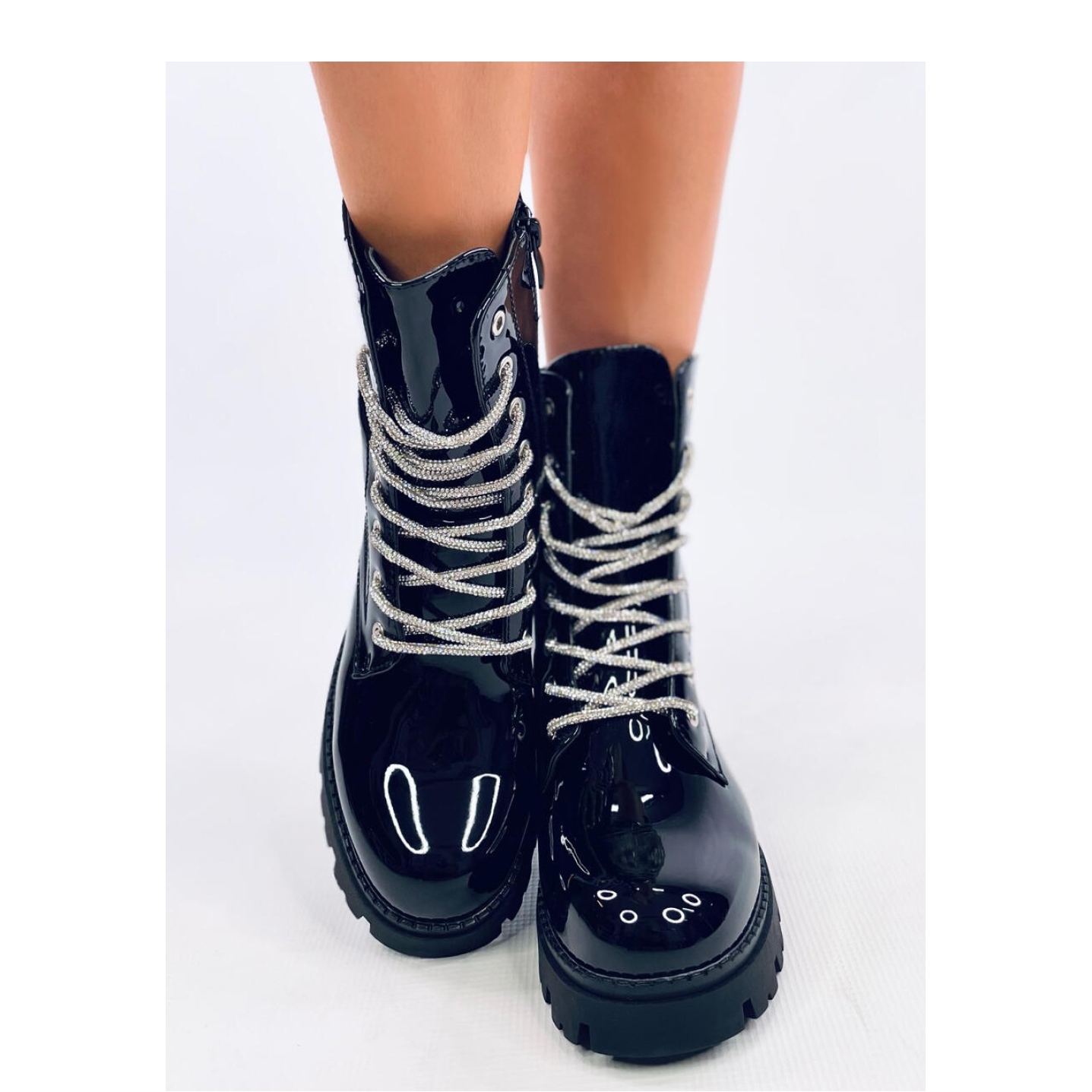 Quanes Miroir from I inello is the perfect choice for women who want to combine comfort with a unique style. These elegant, black boots are characterized by a timeless design, enriched with an eclectic, varnished finish and effective laces blown with zircons, which will definitely attract looks.